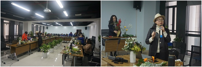 活動(dòng)現(xiàn)場,特邀日本華道草月流的花道師徐珍為大家講授花藝,詳細(xì)講解了插花花材的識(shí)別、色彩的搭配、插花特點(diǎn)等方面的知識(shí),并現(xiàn)場進(jìn)行了插花展示,指導(dǎo)大家親自實(shí)踐插花。