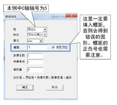 ?4) 增加C軸的實(shí)際位置采樣為通道2,注意填入螺距。