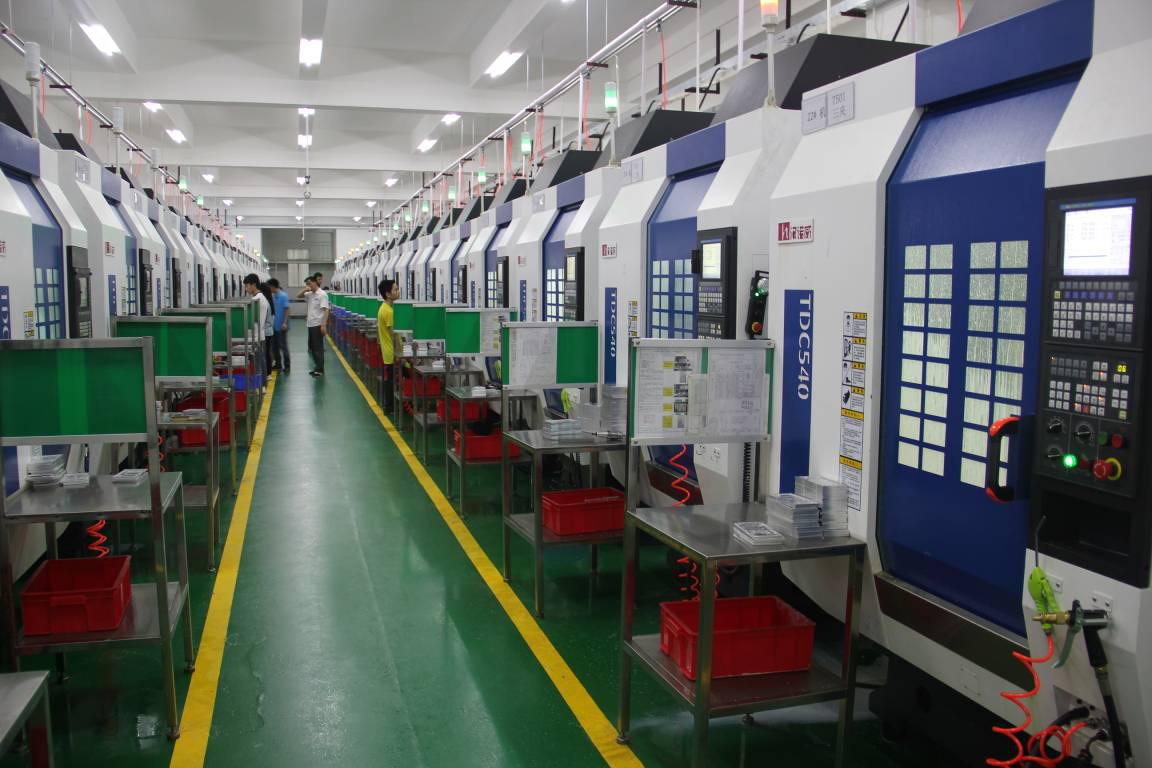 目前,在深圳興丹寨公司車間,有80臺配置華中數控HNC-818AM鉆攻中心數控系統的鉆攻中心在進行手機外殼、中框、卡槽的加工,每天24小時不間斷工作,已經運行了3個多月,一直很穩定,沒有出現任何質量問題。王總對下一步與華中數控的合作,對承擔更多的加工業務信心滿滿。