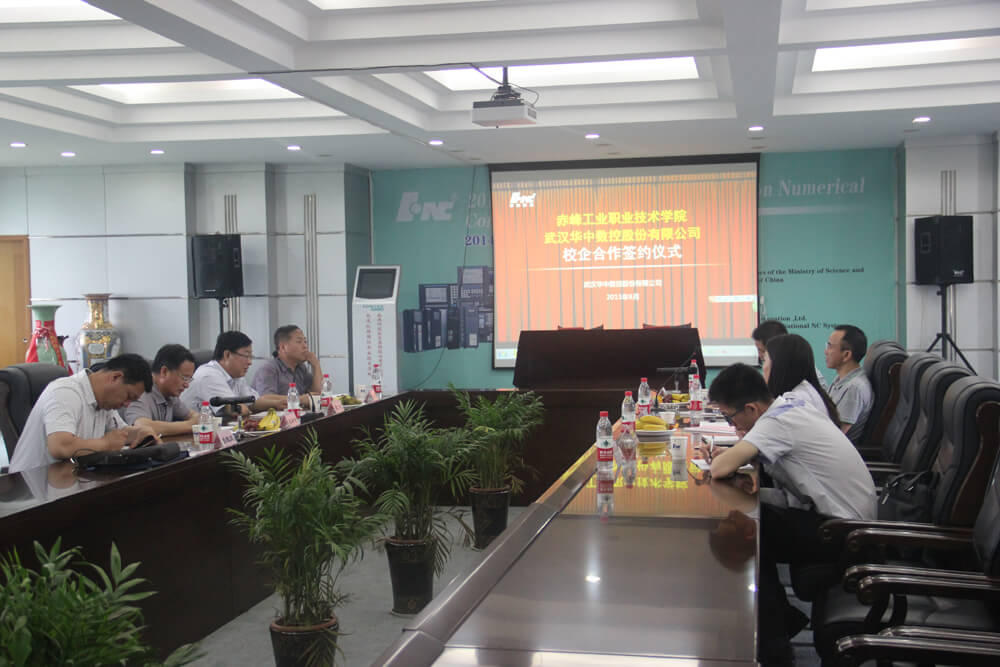 2015年6月4日,赤峰工業(yè)職業(yè)技術(shù)學(xué)院霍書(shū)記一行來(lái)訪,與武漢華中數(shù)控股份有限公司副總裁熊清平等領(lǐng)導(dǎo)舉行校企合作交流會(huì)。雙方就深化校企合作關(guān)系,實(shí)現(xiàn)深度合作達(dá)成一致,并且簽訂了相關(guān)項(xiàng)目合作協(xié)議。