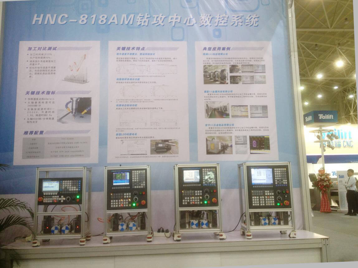 許多參展的機床企業展出了配置華中8型數控系統的機床,特別是深圳市德天機電設備有限公司展出了五臺高速鉆攻中心,全部配置華中8型數控系統,氣勢喜人。