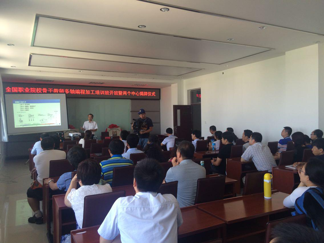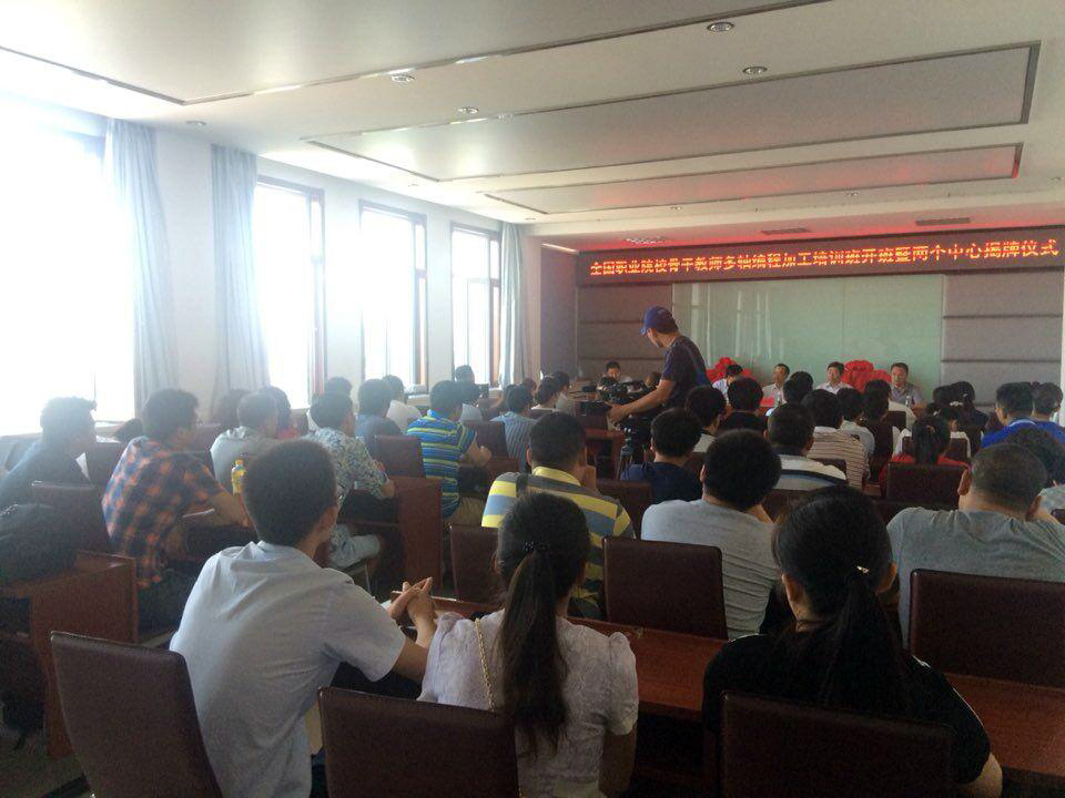 2015年7月22日,由武漢華中數(shù)控股份有限公司與赤峰工業(yè)職業(yè)技術(shù)學(xué)院合作舉辦的“全國(guó)職業(yè)院校骨干教師多軸編程加工培訓(xùn)班”開班典禮暨“兩個(gè)中心”揭牌儀式在赤峰工業(yè)職業(yè)技術(shù)學(xué)院成功舉行。