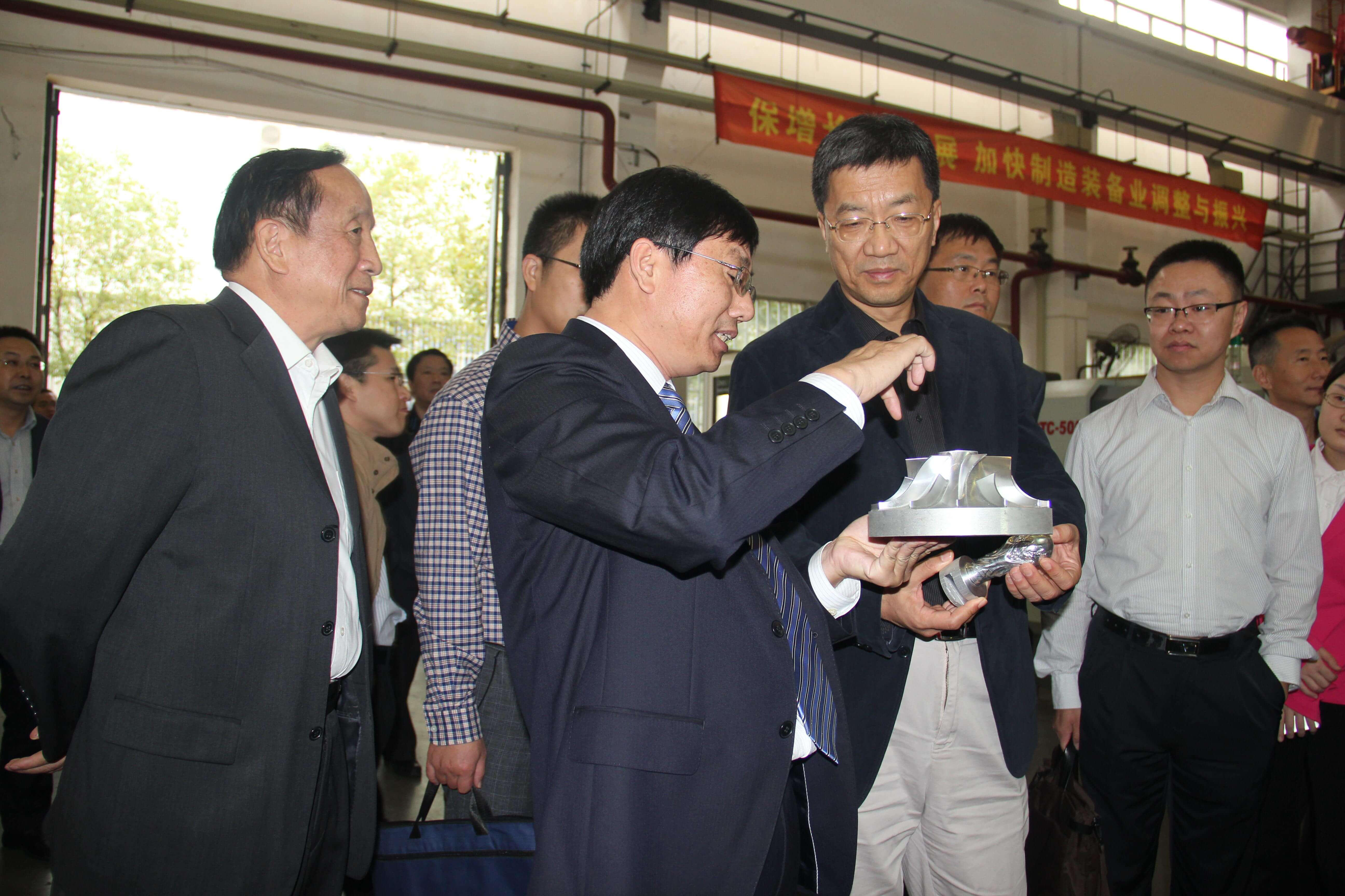 28日下午,工信部懷進鵬副部長、武漢市政府萬勇市長等同志率調研組抵達華中數控,公司副總裁王群、蔣榮良、葉建國等陪同調研,向懷部長詳細匯報了“中國制造2025”湖北落實情況、公司近年發展現狀和承擔國家重大專項情況,懷部長對公司今年來取得的技術突破表示肯定,并與王群、蔣榮良、葉建國等同志親切交流,在智能制造和工業4.0進行了熱烈探討。