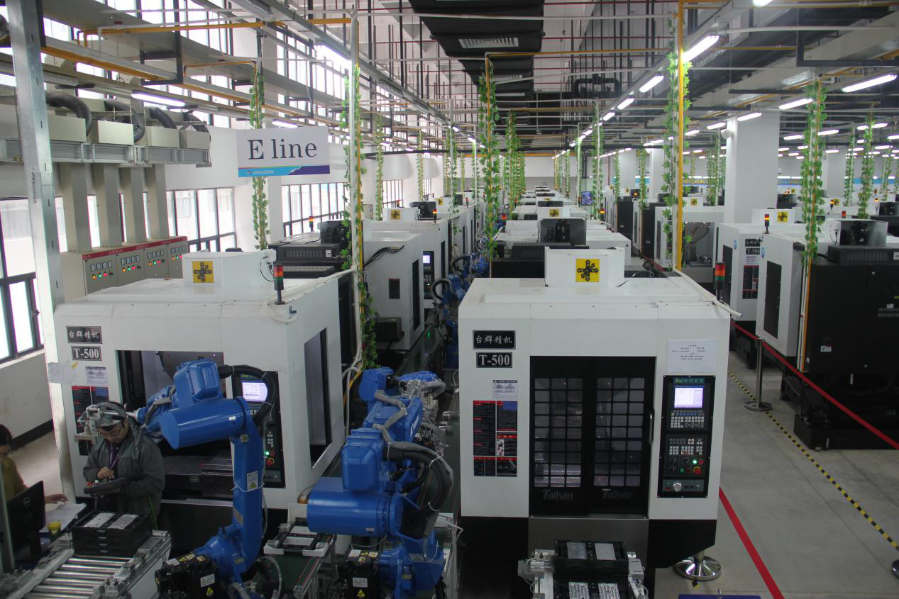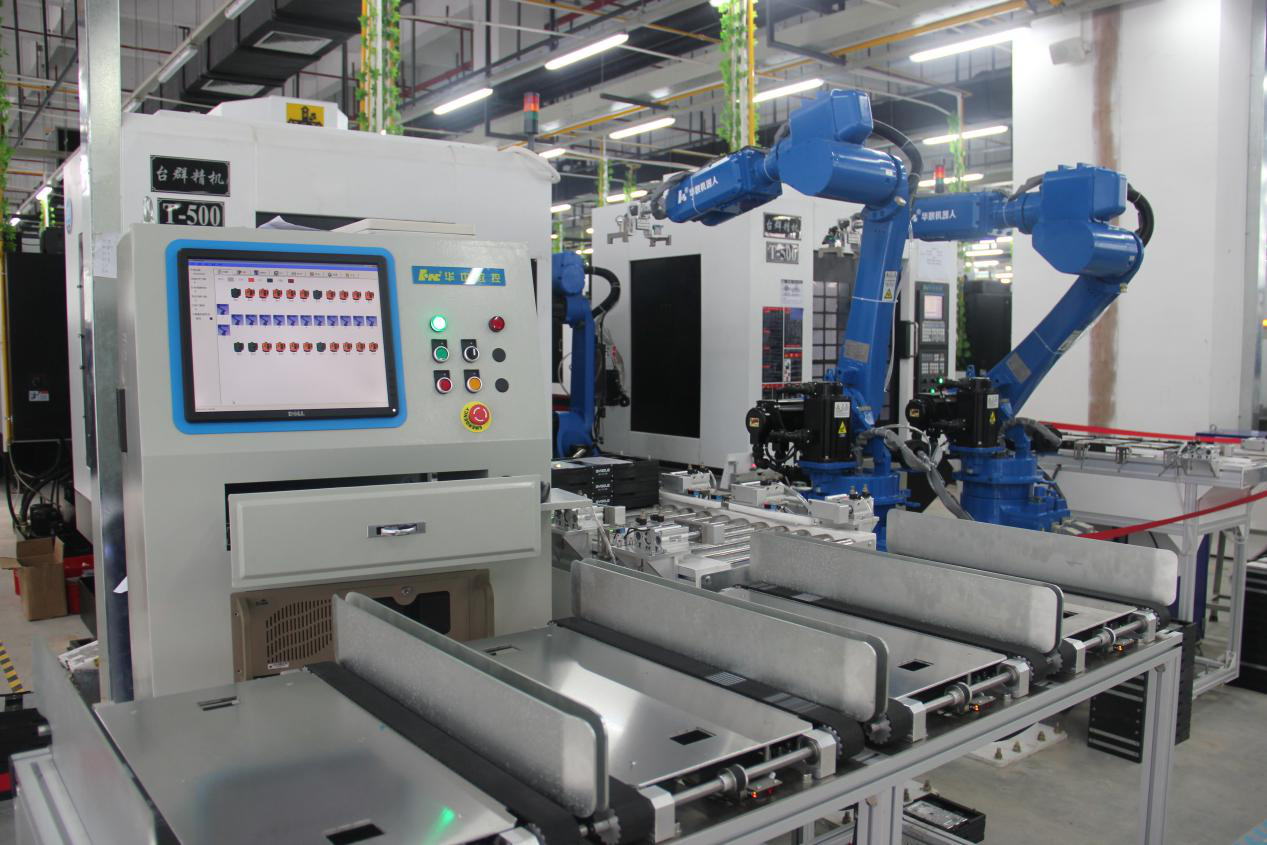 項目總體目標是實現工業4.0縱向集成,智能制造工廠在3C行業的示范,實現高速高精國產鉆攻數控設備、數控系統與機器人的協同工作,在業內率先實現裝夾環節采用機器人代替人工操作,節省70%以上的人力;建立基于物聯網技術的制造現場“智能感知”系統,改造升級現有生產制造系統,建立全制造過程可視化集成控制中心,實現對鉆攻中心中心、機器人、物流裝備等的全面支持,降低產品不良率,縮短產品研制周期,提高設備利用率,提升車間能源利用率,最終實現少人化人機協同化生產。