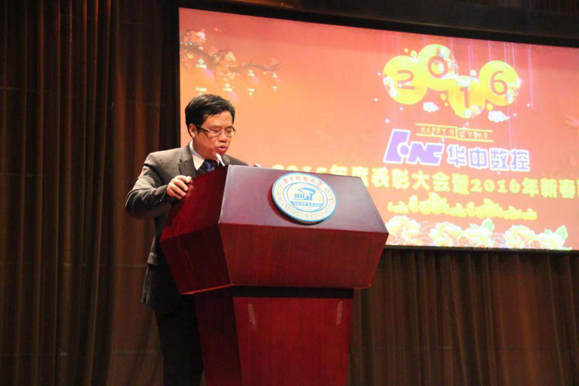 歲月不居,天道酬勤。大會首先由華中數控董事長陳吉紅發表新年致辭。陳總首先向公司、包括子公司的全體員工、員工家屬,致以誠摯的問候,祝福大家新年快樂,陳總指出,我們在傳統產品市場萎縮的情況下,我們調整結構,提早布局,精心安排,發展了新的增長點,不僅使公司2015年的產值規模保持基本穩定,而且為2016年,為整個“十三五”都開辟了新的空間。并且向在崗位上做出突出貢獻的個人和團隊分別頒發獎項。
