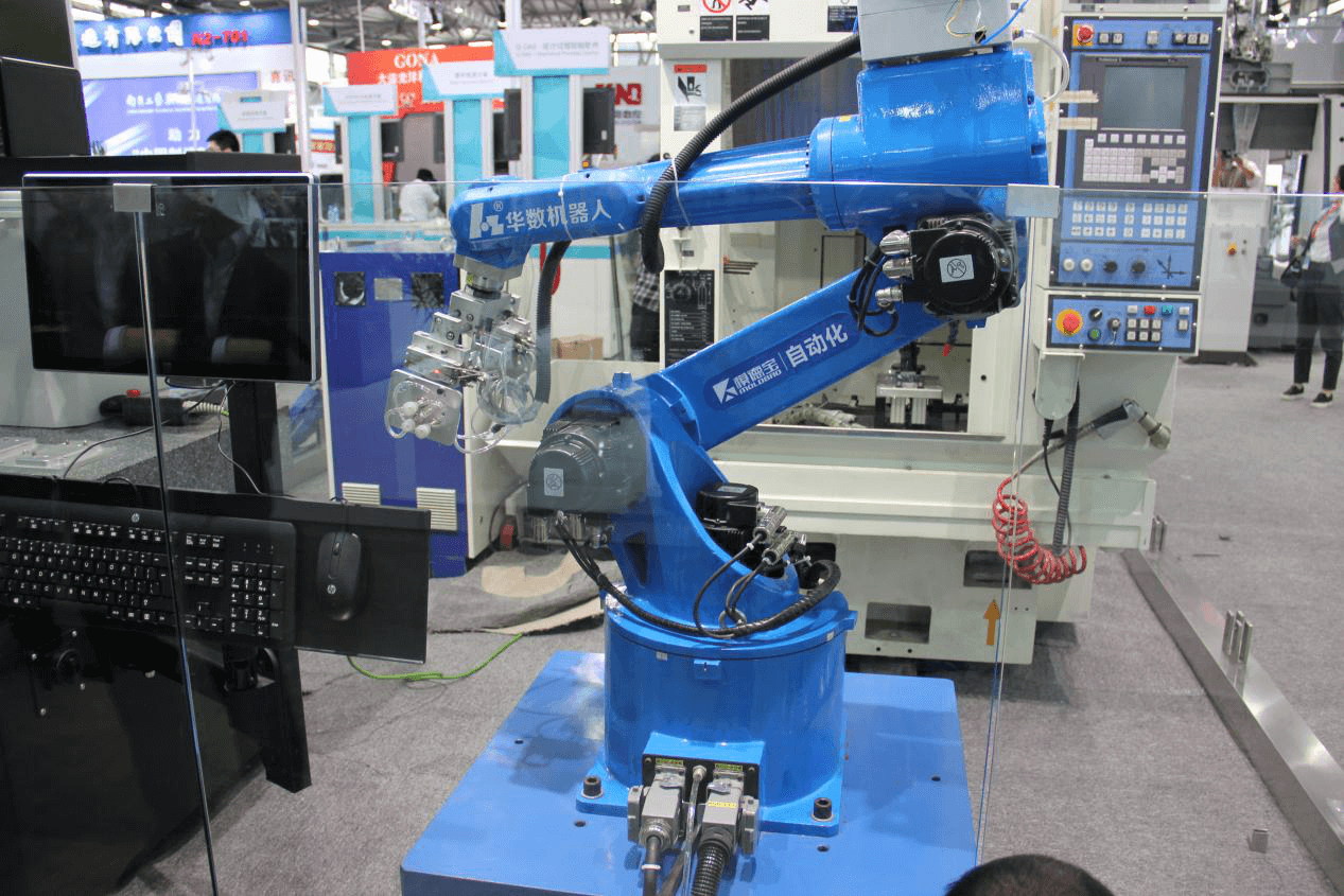 青島??怂箍蹬渲萌A數機器人的3C加工單元