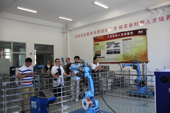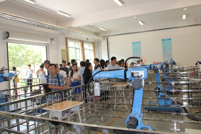 典禮儀式結(jié)束后,全體與會人員合影留念,并且一起參觀了學院實訓車間,對學院良好的教學實訓條件和敬業(yè)勤勞的教師隊伍留下深刻印象。全體培訓教室就工業(yè)機器人、智能制造等相關專業(yè)的教育教學、實訓實踐等內(nèi)容進行了交流和研討。本次培訓為期10天,將主要就工業(yè)機器人指令、電氣系統(tǒng)、控制原理、離線編程、操作、拆裝等內(nèi)容進行培訓,培訓指導工作由校企合作雙方的近10位老師共同完成,其中包括華中數(shù)控精心選派的孫海亮、石義淮、楊威、劉豐等具有豐富教學、實踐經(jīng)驗的老師。