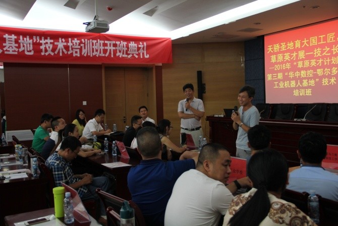 “天驕圣地育大國工匠,草原英才展一技之長。”7月25日-8月4日,華中數(shù)控與鄂爾多斯職業(yè)學院合辦的“2016草原英才計劃”——工業(yè)機器人培訓班在內(nèi)蒙古鄂爾多斯職業(yè)院校成功舉辦。來自廣州工程技術職業(yè)學院、河北工業(yè)職業(yè)技術學院、武漢軟件工程職業(yè)學院、福建工業(yè)學校、衡水學院、遼寧建筑職業(yè)學院等近20所院校的四十余名教師參加了本次培訓,普遍反映收獲很大,感謝華中數(shù)控和鄂爾多斯職業(yè)學院共同提供了很好的學習平臺,針對工業(yè)機器人的教學和實訓,大家共同研討、共同學習。培訓期間,各位老師對鄂爾多斯這塊神奇的地方、天驕圣地留下深刻印象,感受到內(nèi)蒙古獨特的文化魅力和自然風景。