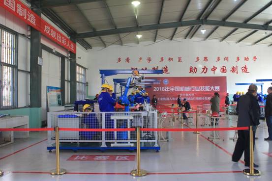2016年全國機械行業技能大賽 “華中數控杯”工業機器人裝調及智能制造應用職業院校大賽于2016年11月15日-18日在山東泰安拉開帷幕,本次大賽共有來自全國各省市的39所院校,117位選手參加本次大賽,為期三天的競賽,大家努力拼搏,奮勇奪冠!
