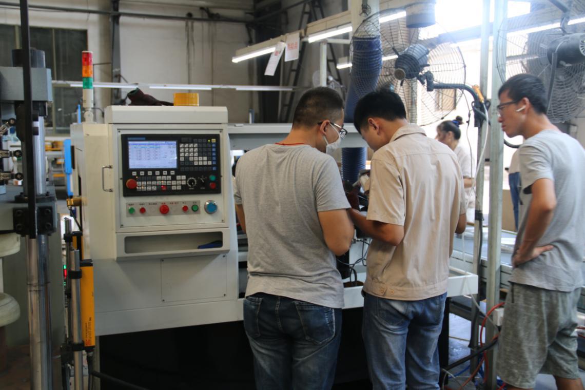 在三禾廚具的生產(chǎn)車間,除了一排又一排各式各樣的鍋具外,更吸引小編的是在鍋具產(chǎn)線上站著的那些身穿藍(lán)衣的“神秘俠客”,他們矗立在一臺(tái)臺(tái)機(jī)床之間,手臂靈活的來回抓取一件一件工件,面不改色,一絲不茍!就像武俠電影中立于陣前的俠客!