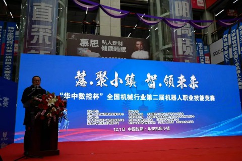2018年 12月1日,由機(jī)械工業(yè)職業(yè)技能鑒定指導(dǎo)中心主辦,遼寧東升智能產(chǎn)業(yè)發(fā)展有限公司、武漢華中數(shù)控股份有限公司承辦,中國(guó)焊接協(xié)會(huì)、中國(guó)模具工業(yè)協(xié)會(huì)中國(guó)汽車(chē)工程學(xué)會(huì)、中國(guó)鑄造協(xié)會(huì)、中國(guó)印刷及設(shè)備器材工業(yè)協(xié)會(huì)中國(guó)電器工業(yè)協(xié)會(huì)、中國(guó)工程機(jī)械工業(yè)協(xié)會(huì)、中國(guó)勞動(dòng)學(xué)會(huì)機(jī)械分會(huì)、機(jī)械工業(yè)經(jīng)濟(jì)管理研究院、于洪區(qū)人民政府、沈陽(yáng)職業(yè)技術(shù)學(xué)院協(xié)辦的“華中數(shù)控杯”全國(guó)機(jī)械行業(yè)第二屆工業(yè)機(jī)器人職業(yè)技能競(jìng)賽在遼寧東升智能產(chǎn)業(yè)發(fā)展有限公司隆重開(kāi)幕。