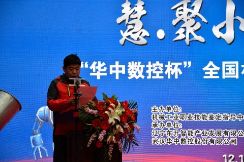 大賽裁判長(zhǎng),武漢華中數(shù)控股份有限公司培訓(xùn)部部長(zhǎng)孫海亮宣讀競(jìng)賽規(guī)程?