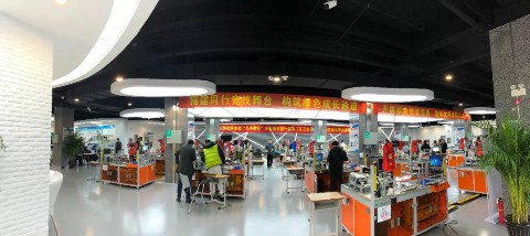 本次比賽在沈陽(yáng)永安特色小鎮(zhèn)的華中數(shù)控(遼寧)智能制造應(yīng)用示范基地舉辦,基地是目前東北地區(qū)規(guī)模最大、設(shè)備最為齊全的工業(yè)機(jī)器人實(shí)訓(xùn)基地。基地配有媒體教室、實(shí)訓(xùn)室、技能訓(xùn)練中心等教學(xué)場(chǎng)所,占地面積近2萬(wàn)平方米。是由武漢華中數(shù)控股份有限公司與遼寧東升智能產(chǎn)業(yè)發(fā)展有限公司共同出資打造。引進(jìn)了工業(yè)機(jī)器人操調(diào)實(shí)訓(xùn)平臺(tái)、工業(yè)機(jī)器人機(jī)電一體化拆裝工作站、智能制造生產(chǎn)線、五軸加工中心以及3D打印機(jī)等先進(jìn)智能制造設(shè)備60余套,可同時(shí)容納300人進(jìn)行實(shí)訓(xùn)。為此次競(jìng)賽提供了充足條件。