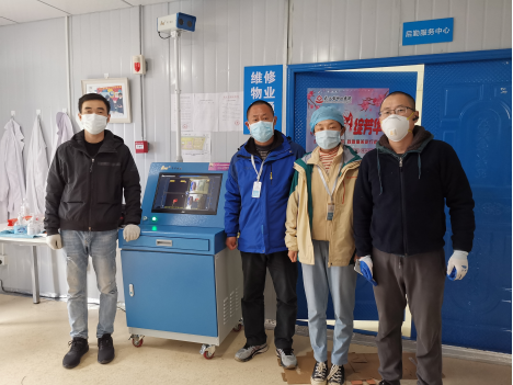 設(shè)備驗收結(jié)束,武漢市城建局指揮部丁處長,雷神山醫(yī)院保衛(wèi)處王處長都對設(shè)備十分滿意,設(shè)備操作者也表示設(shè)備簡便操作,易上手,數(shù)據(jù)直觀,相比其他品牌測溫更準(zhǔn)。醫(yī)院方表示:“以前都是通過點溫槍檢測體溫,現(xiàn)在有了這個設(shè)備,第一可以節(jié)省人力、節(jié)省時間,第二可以避免人員接觸造成交叉感染”。?